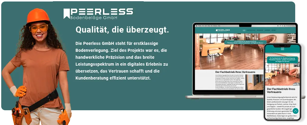 Ein digitaler Showroom für erstklassiges Handwerk: Die neue Webpräsenz der Peerless GmbH vereint ästhetische Inspiration mit funktionaler Beratung. Durch ein nutzerzentriertes Interface werden hochwertige Bodenlösungen für Privat- und Gewerbekunden erlebbar gemacht – von der ersten Inspiration bis zur präzisen Planung
